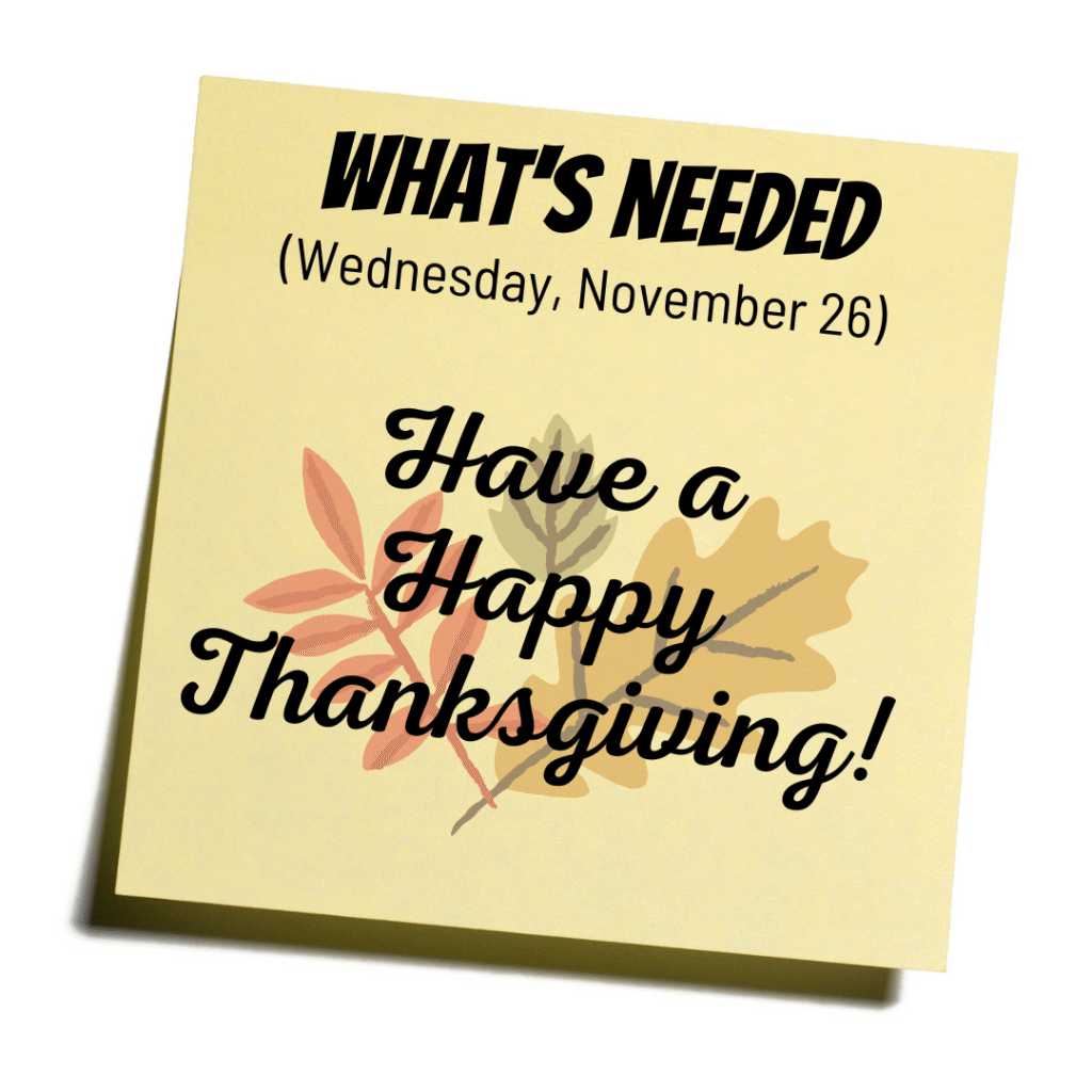 What’s Needed Wednesday